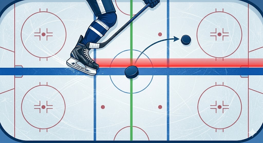 - Kiekon on ylitettävä siniviiva ennen hyökkäävää pelaajaa.